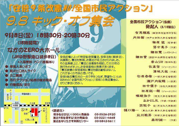 連絡先:戦争をさせない1000人委員会 TEL 03-3526-2920