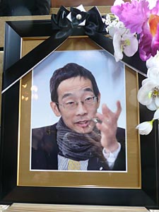 病を得てからの、首にマフラーを巻いて微笑する日隅君の遺影に向かって、お焼香した。