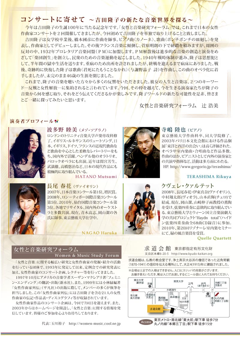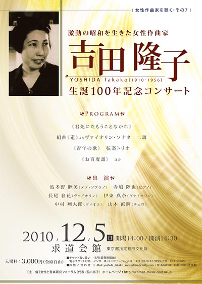 「吉田隆子生誕100年記念コンサート」 のご案内