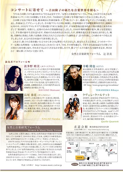 と、かくして私もメンバーの一員である 「女性と音楽研究フォーラム」 の主催により、12月5日(日) 14時30分開催と決まったそのコンサート概要を、