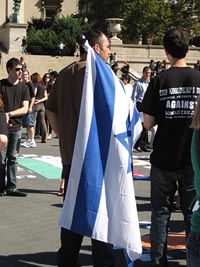 イスラエルの旗、ユダヤの帽子(キッパー)があちらこちらに