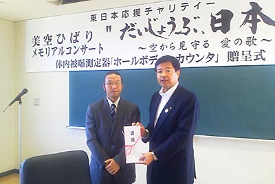 8月31日、(美空)ひばりプロダクションから会津若松市に内部被曝量を測定するホールボディカウンター(WBC)が贈られた。