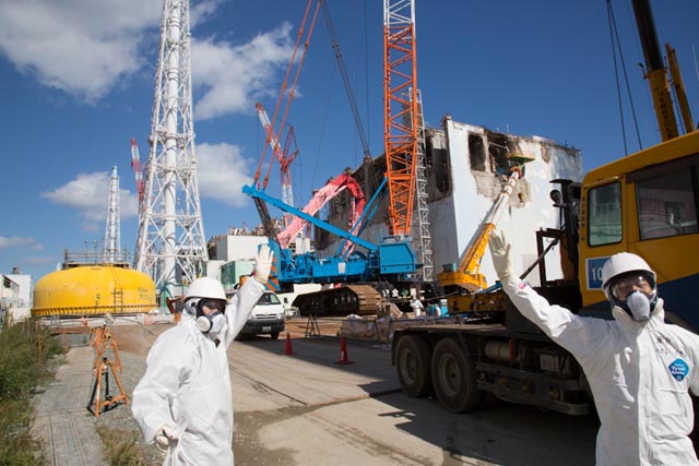 今回初めて、4号機山側地点でバスから降りての取材が許されました。 そこには9月、建屋から降ろされた原子炉格納容器の蓋がありました。直径9.6メートル、重さ72トン。 作業員たちは、その黄色い蓋の中をのぞき込み作業を続けていました。 私が持参した線量計の値は120マイクロシーベルト以上。 東電の計測では、バスの中であっても1000マイクロシーベルト超のホットスポットもありました。 現場の作業員は、こう話します。 「最近、年間50ミリシーベルトの限界値が近い仲間が増えてきました。 それを超えると職を失うことになります。生活も健康も不安な毎日です」 写真家 尾崎孝史