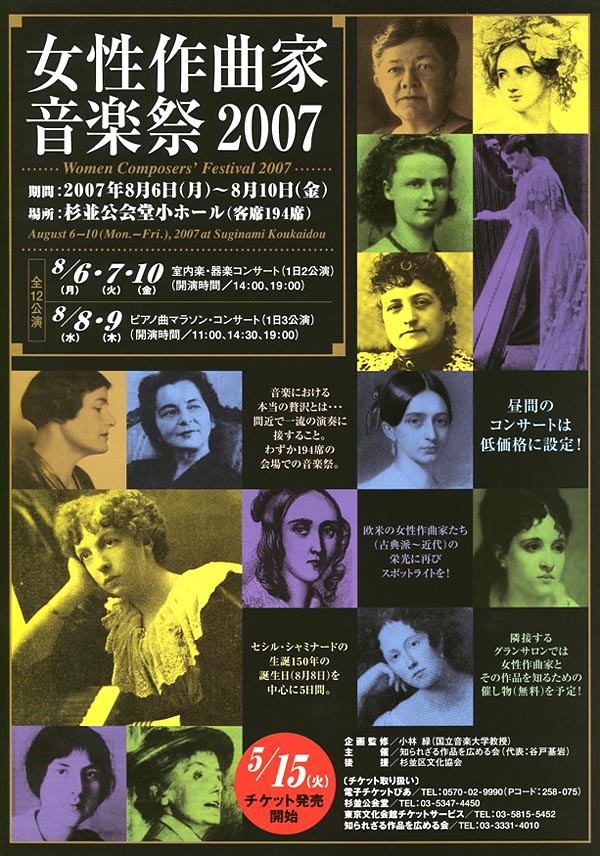 女性作曲家のコンサートをパリ日本文化会館と杉並公会堂で継続していまも開催しているわけではなく、両者ともあくまで単発のものであり、