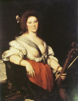 自ら歌うための素晴らしい歌曲を多数残したバロック時代の作曲家=歌手バルバラ・ストロッツィ [1619-77] の肖像画がその典例といえよう(図版4)。