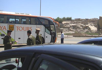 熱砂を往復6時間、武装警官とともにひた走ってアブシンベル神殿へ。