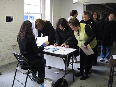 会場でボランティア登録をすませ、一日の仕事の説明を受ける。私の仕事は、戸別訪問。4人チームで100軒くらいの家を周り、