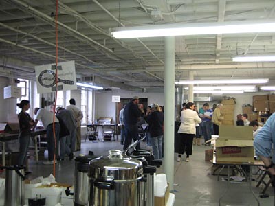 ボランティアセンターには、自分も何かやりたい! という人がスウィング・ステート目指して続々と全米から集合。ボランティア登録をするにも長蛇の列。